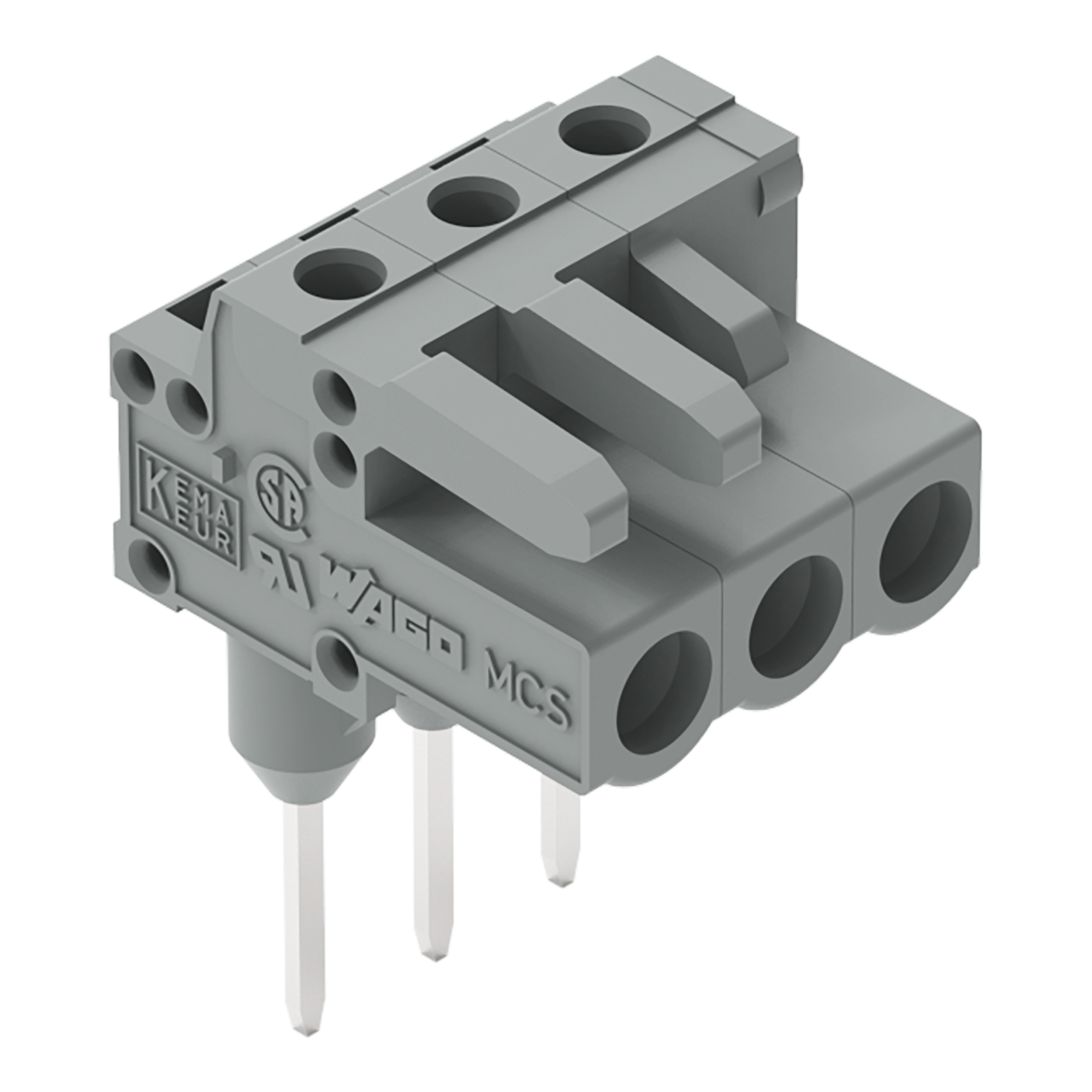 gniazdo do złączek listwowych; piny 0,6 x 1 mm; konstrukcja kątowa; raster 5 mm; 3-bieg.; szary
