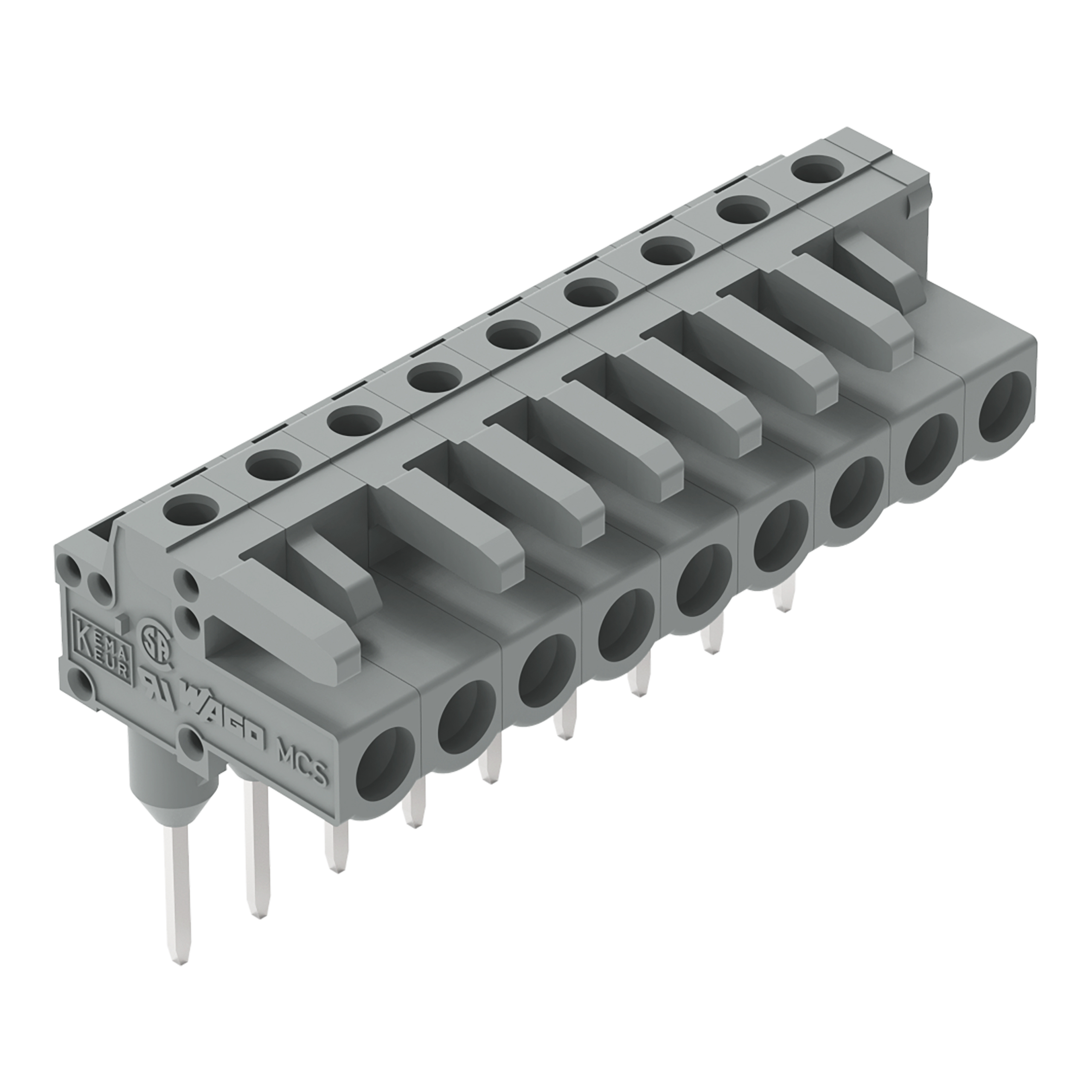 Gniazda do złączek listwowych Piny 0,6 x 1 mm konstrukcja kątowa, szara 232-239/005-000