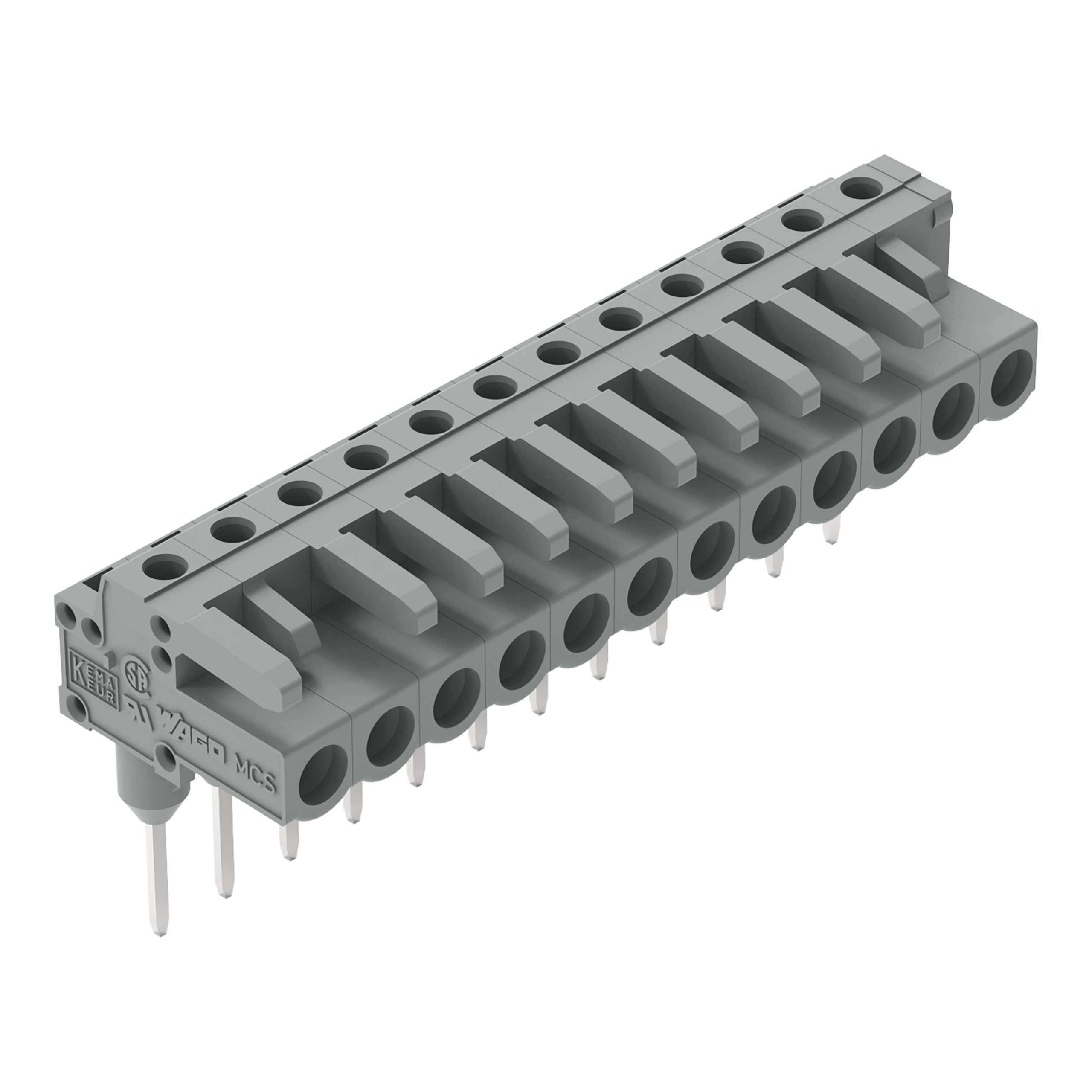 gniazdo do złączek listwowych; piny 0,6 x 1 mm; konstrukcja kątowa; raster 5 mm; 12-bieg.; szary