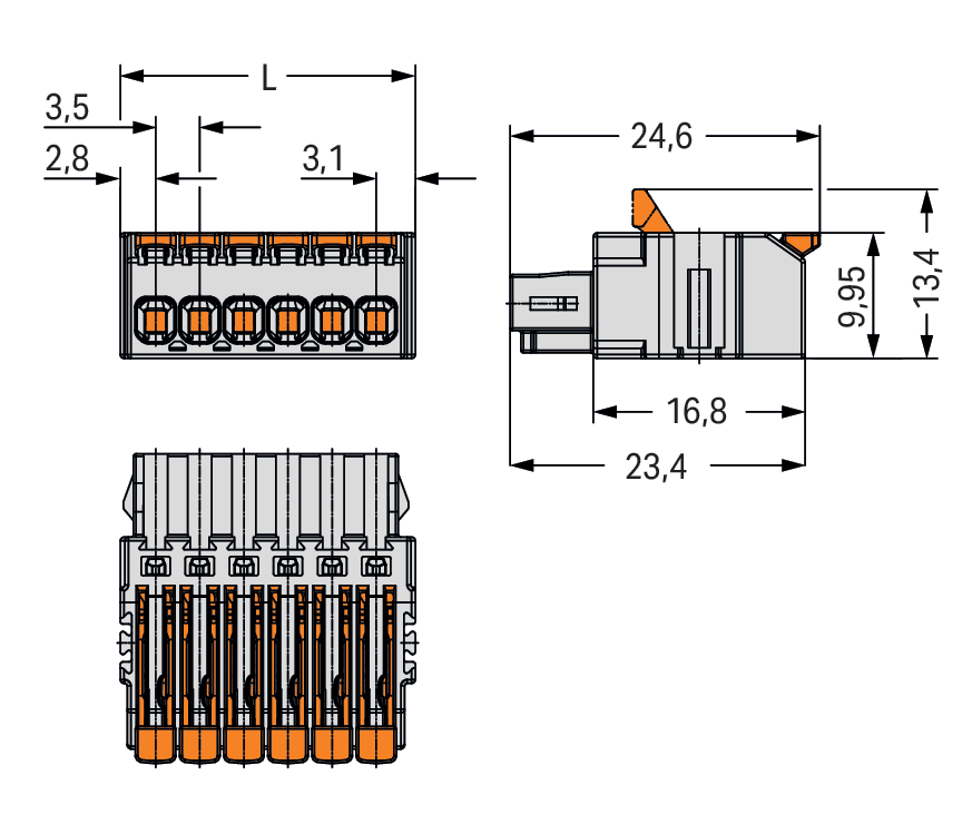 Gniazdo 1-przewodowe dźwignia Push-in CAGE CLAMP®, jasnoszary 2734-1102/327-9037