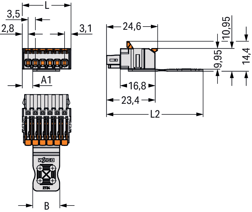 Gniazdo 1-przewodowe dźwignia Push-in CAGE CLAMP®, jasnoszary 2734-1106/327-000/334-000