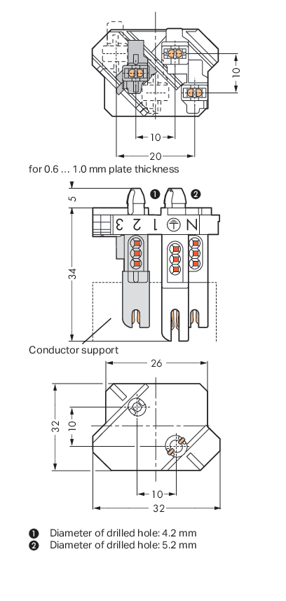 gniazdo; bez styku PE; ze stopkami zatrzaskowymi; 3-bieg.; 1,00 mm²; biały