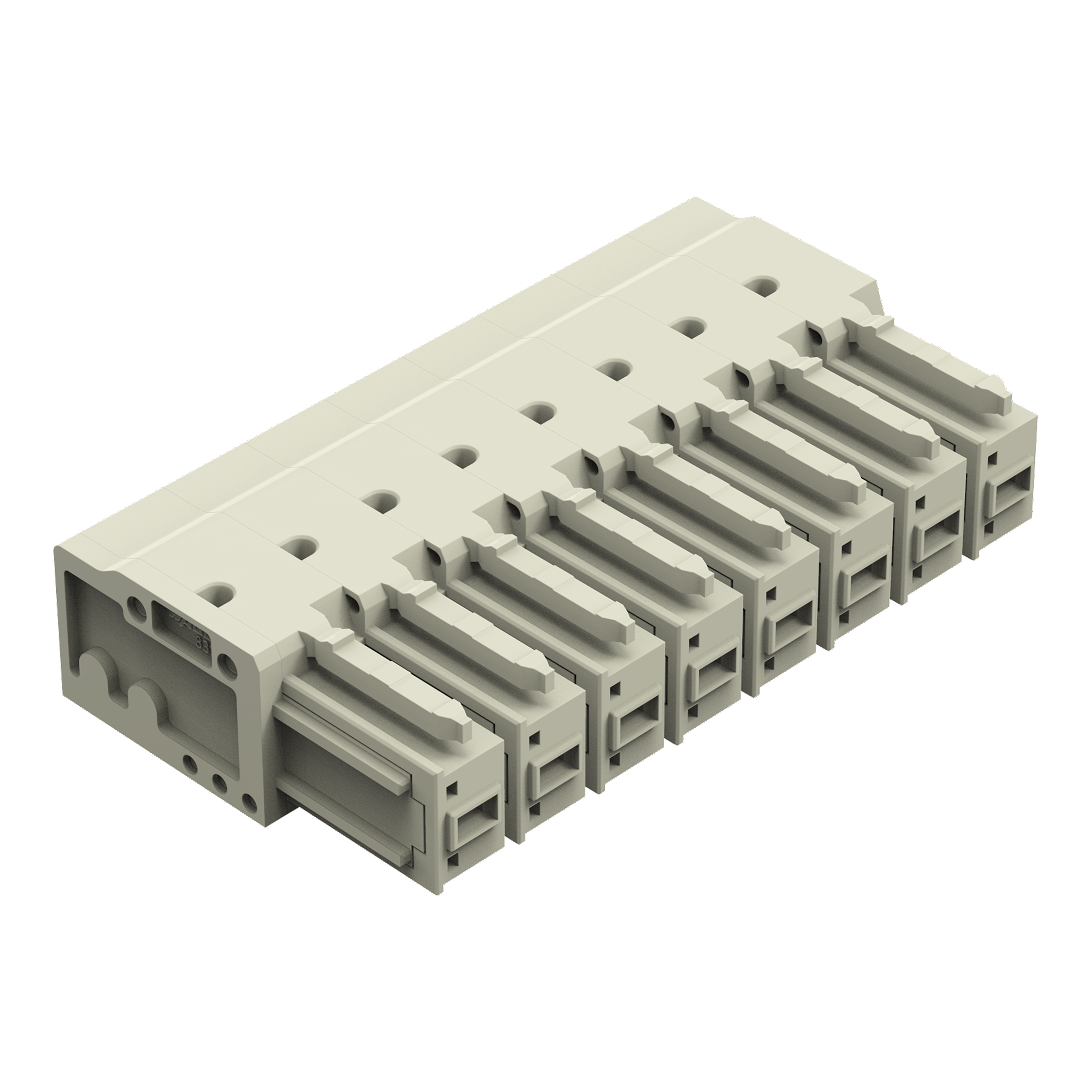 gniazdo THT; konstrukcja kątowa; raster 7,62 mm; 8-bieg.; 100% ochrona przed błędnym połączeniem; pin lutowniczy 1,0 x 1,2 mm; jasnoszary