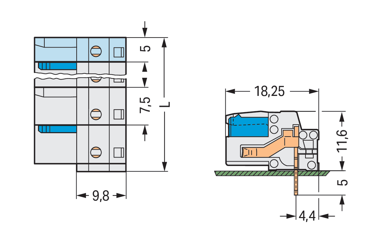 | Kąt płytka drukowana / wtyk: |