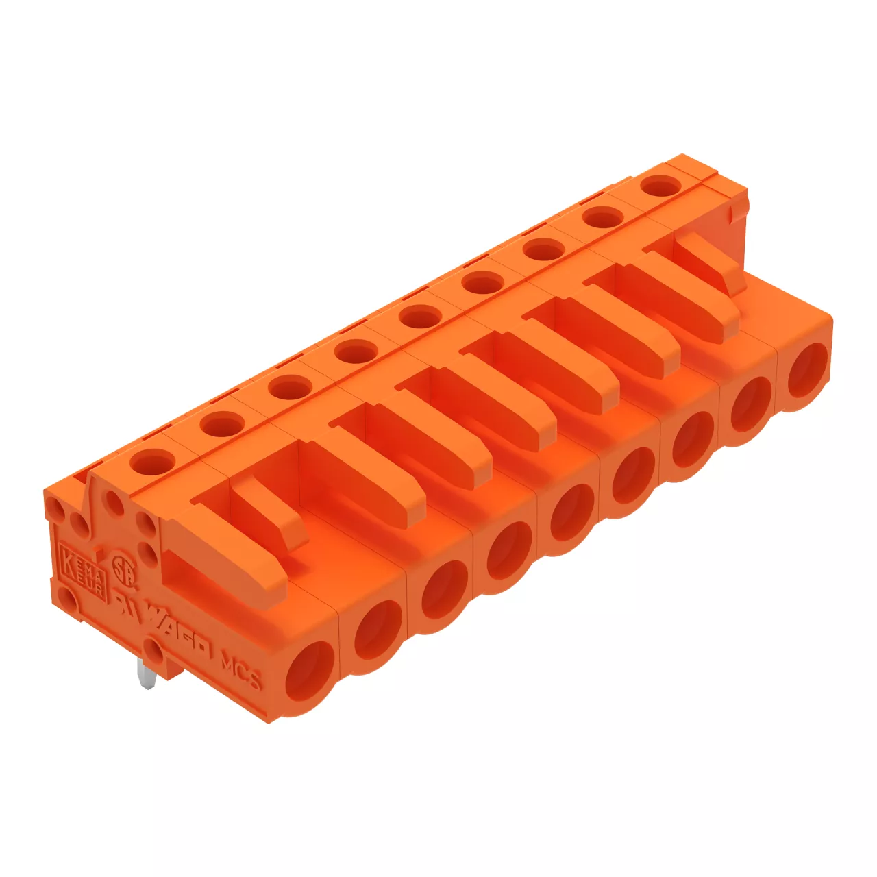 gniazdo THT; konstrukcja kątowa; raster 5,08 mm; 9-bieg.; pin lutowniczy 0,6 x 1,0 mm; pomarańczowy
