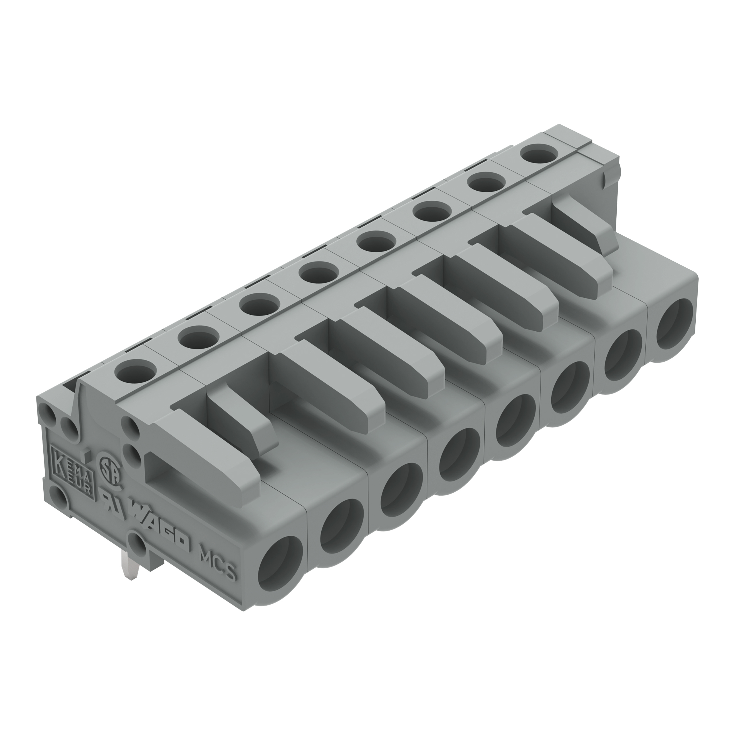 gniazdo THT; konstrukcja kątowa; raster 5 mm; 8-bieg.; pin lutowniczy 0,6 x 1,0 mm; szary