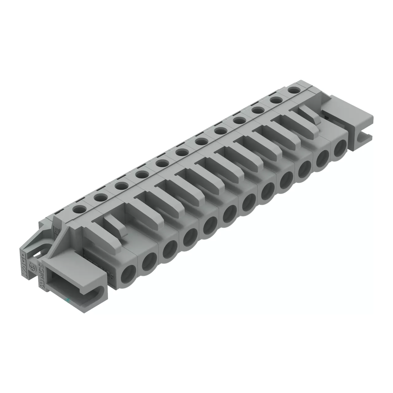 gniazdo THT; konstrukcja kątowa; raster 5 mm; 12-bieg.; dystansowy uchwyt montażowy; pin lutowniczy 0,6 x 1,0 mm; szary