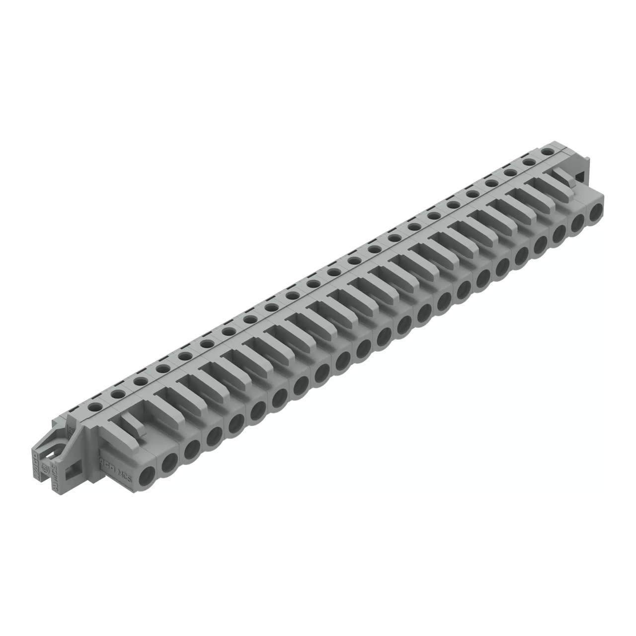 gniazdo THT; konstrukcja kątowa; raster 5 mm; 23-bieg.; kołnierz mocujący; pin lutowniczy 0,6 x 1,0 mm; szary
