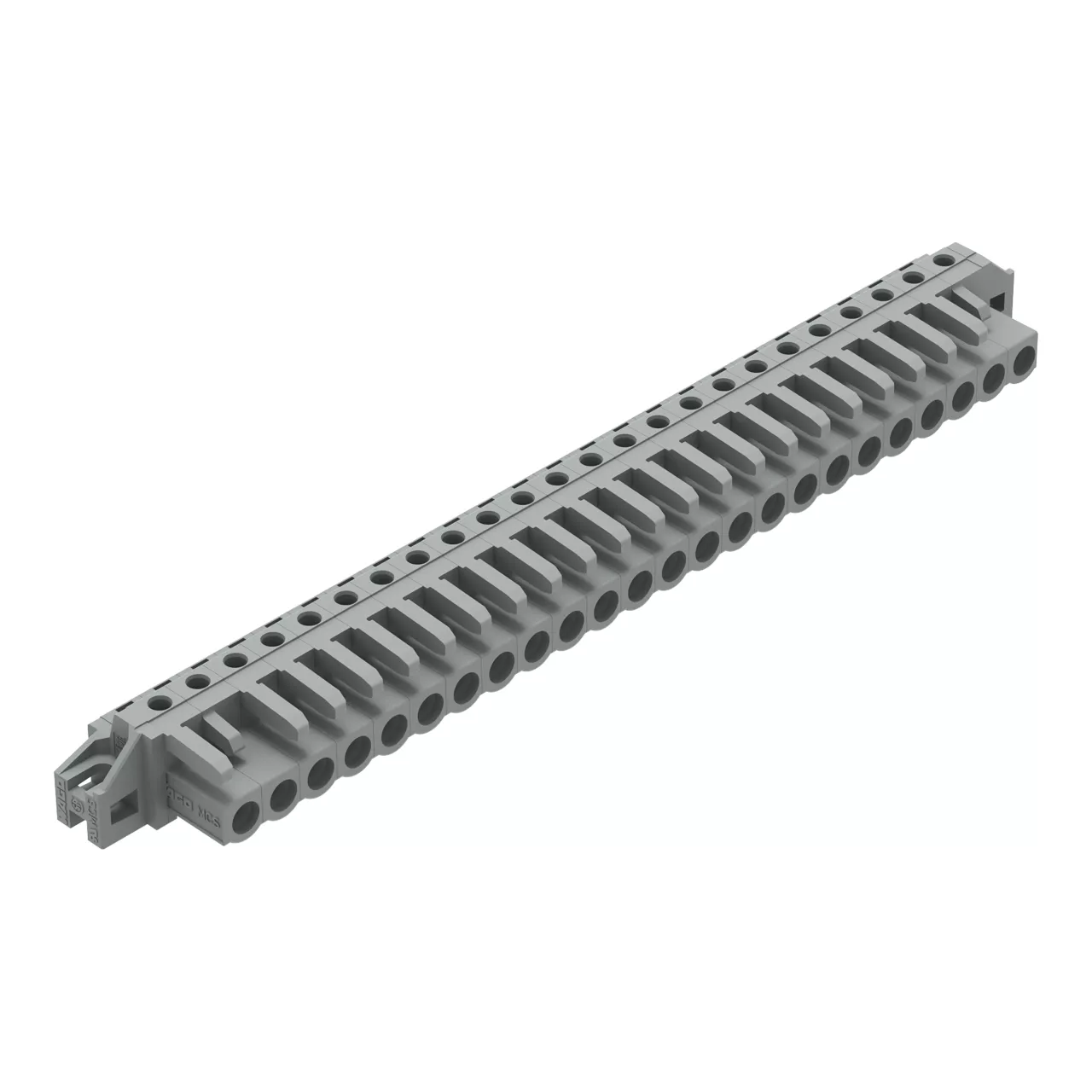 gniazdo THT; konstrukcja kątowa; raster 5 mm; 24-bieg.; kołnierz mocujący; pin lutowniczy 0,6 x 1,0 mm; szary
