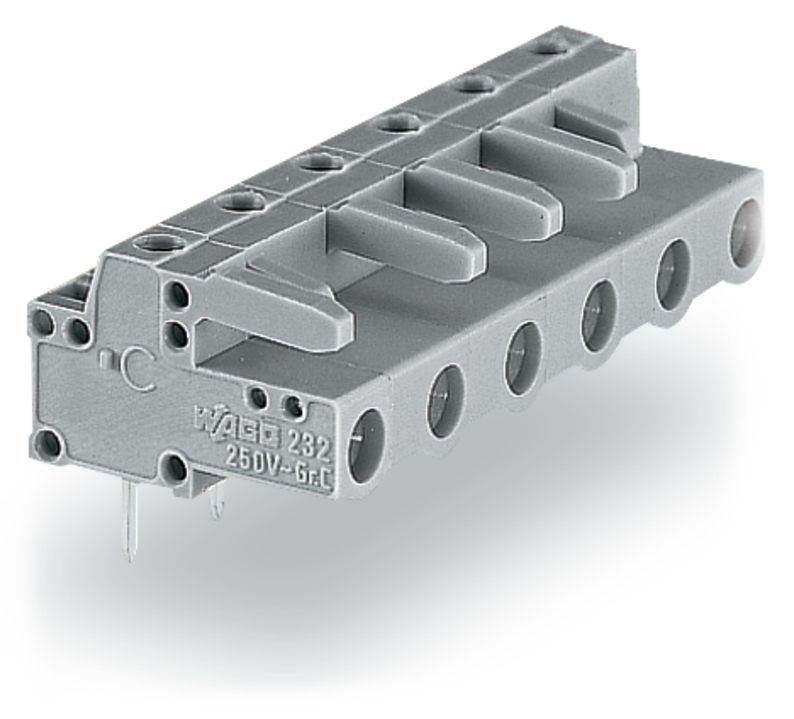 gniazdo THT; konstrukcja kątowa; raster 7,5 mm; 6-bieg.; pin lutowniczy 0,6 x 1,0 mm; szary