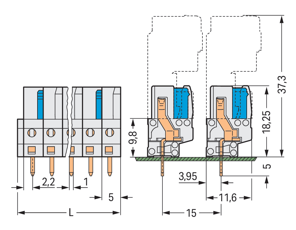 | Kąt płytka drukowana / wtyk: |