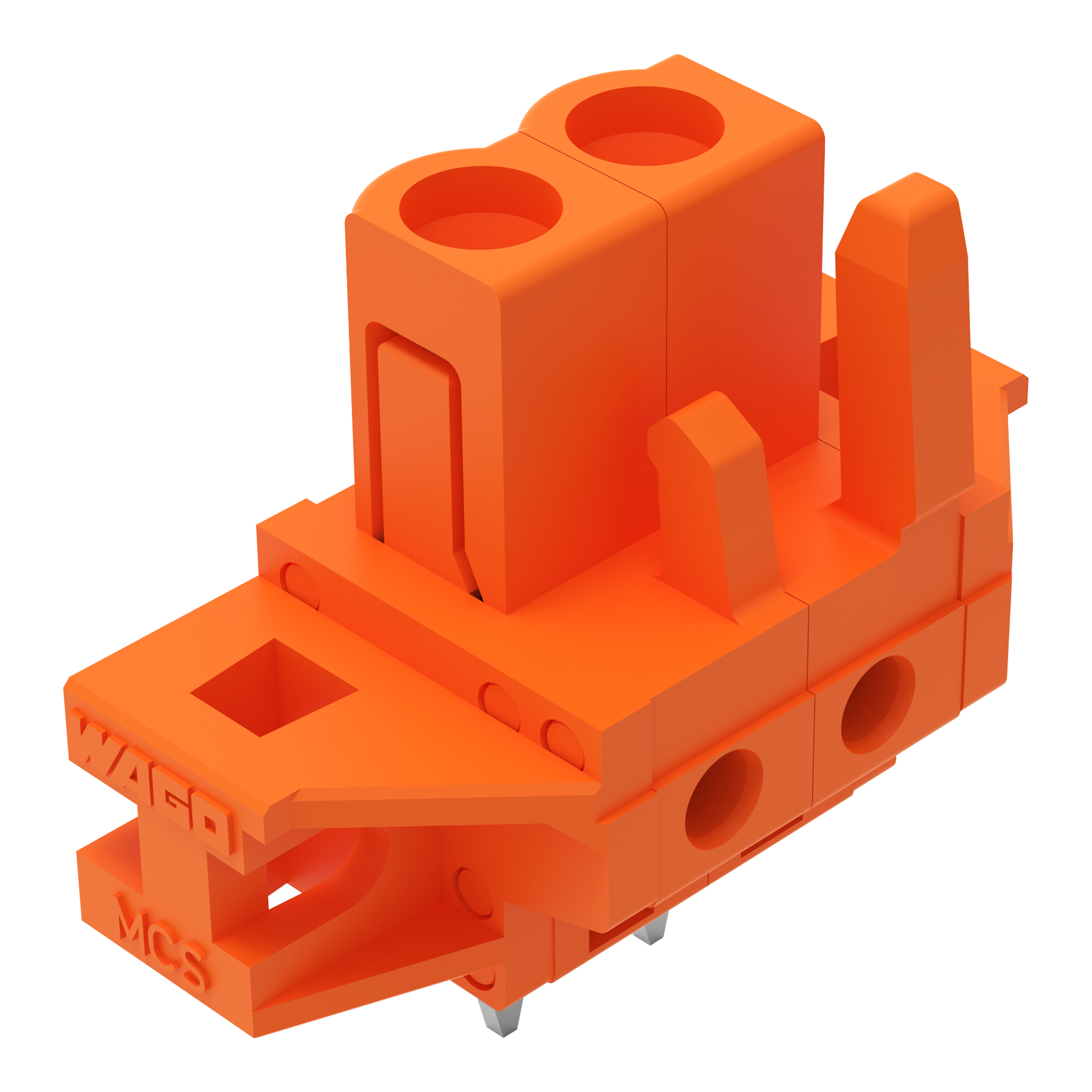 gniazdo THT; konstrukcja prosta; raster 5,08 mm; 2-bieg.; kołnierz mocujący; pin lutowniczy 0,6 x 1,0 mm; pomarańczowy