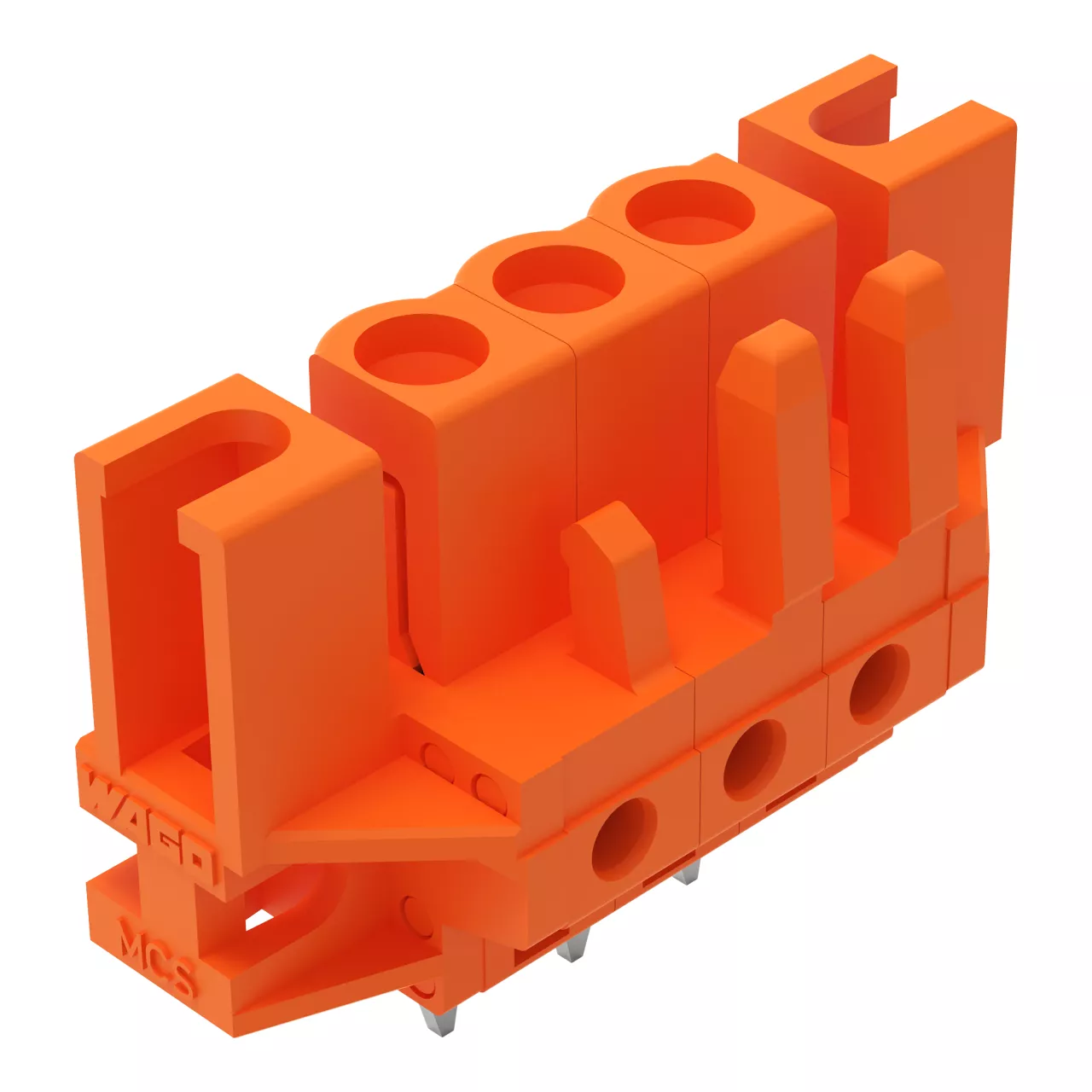 gniazdo THT; konstrukcja prosta; raster 5,08 mm; 3-bieg.; dystansowy uchwyt montażowy; pin lutowniczy 0,6 x 1,0 mm; pomarańczowy