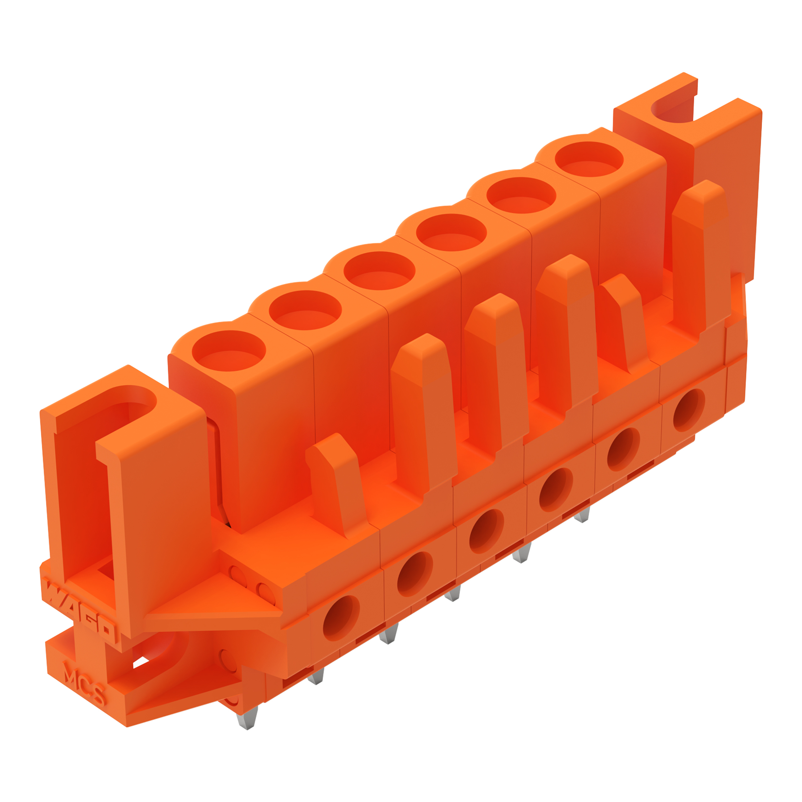 gniazdo THT; konstrukcja prosta; raster 5,08 mm; 6-bieg.; dystansowy uchwyt montażowy; pin lutowniczy 0,6 x 1,0 mm; pomarańczowy
