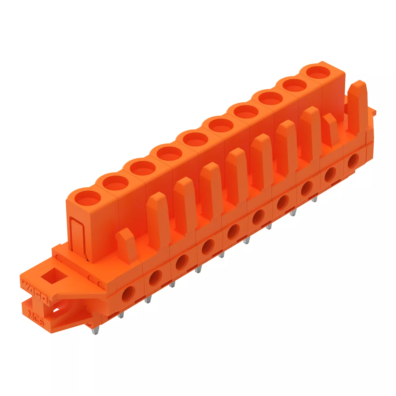 gniazdo THT; konstrukcja prosta; raster 5,08 mm; 10-bieg.; kołnierz mocujący; pin lutowniczy 0,6 x 1,0 mm; pomarańczowy