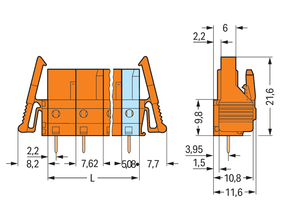 gniazdo THT; konstrukcja prosta; raster 7,62 mm; 3-bieg.; zaczep ryglujący; pin lutowniczy 0,6 x 1,0 mm; pomarańczowy