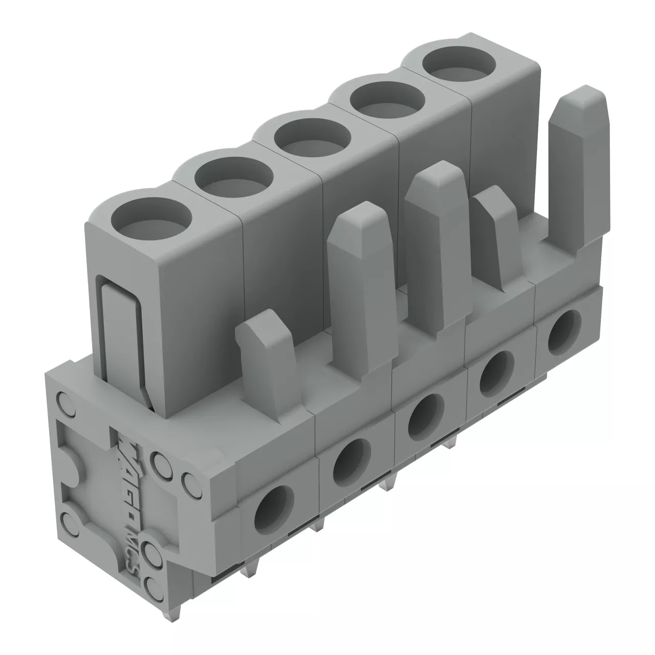 gniazdo THT; konstrukcja prosta; raster 5 mm; 5-bieg.; pin lutowniczy 0,6 x 1,0 mm; szary
