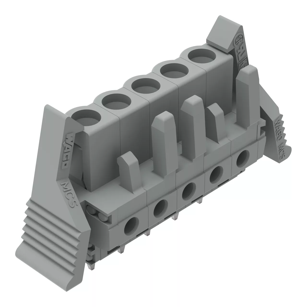 gniazdo THT; konstrukcja prosta; raster 5 mm; 5-bieg.; zaczep ryglujący; pin lutowniczy 0,6 x 1,0 mm; szary