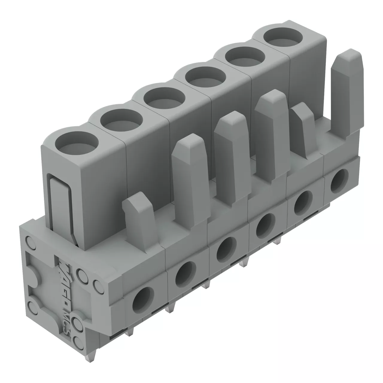 gniazdo THT; konstrukcja prosta; raster 5 mm; 6-bieg.; pin lutowniczy 0,6 x 1,0 mm; szary