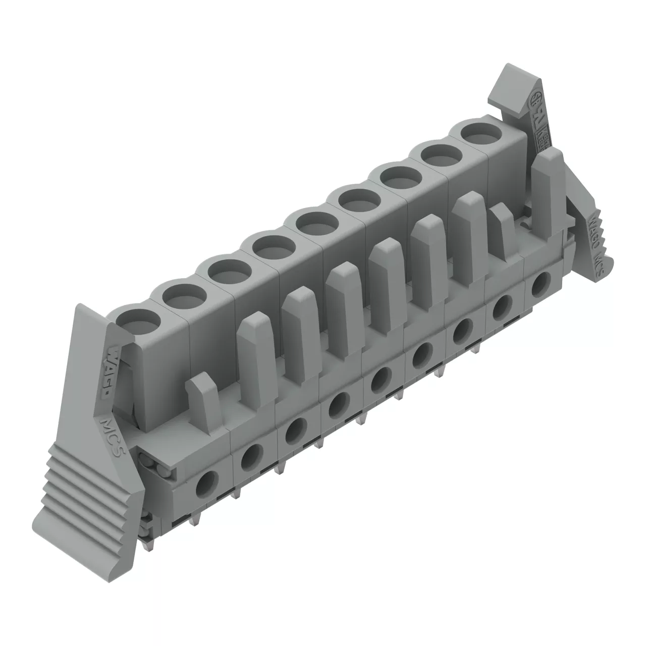 gniazdo THT; konstrukcja prosta; raster 5 mm; 9-bieg.; zaczep ryglujący; pin lutowniczy 0,6 x 1,0 mm; szary