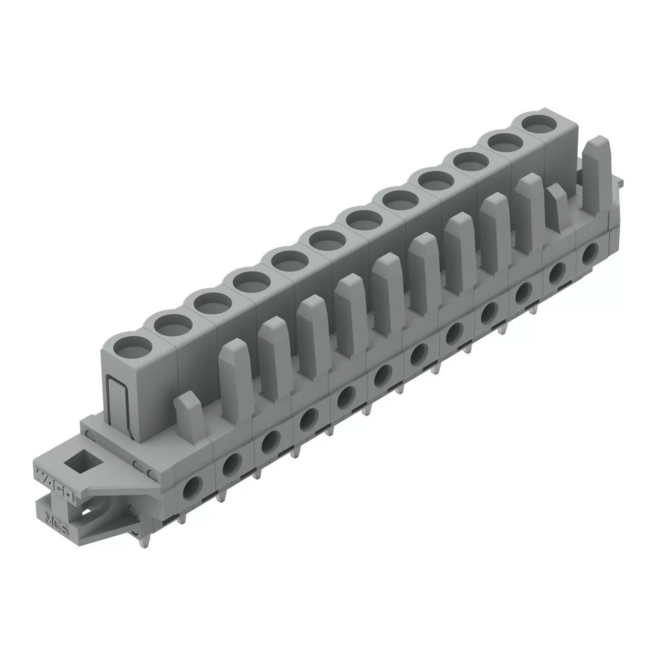 gniazdo THT; konstrukcja prosta; raster 5 mm; 12-bieg.; kołnierz mocujący; pin lutowniczy 0,6 x 1,0 mm; szary