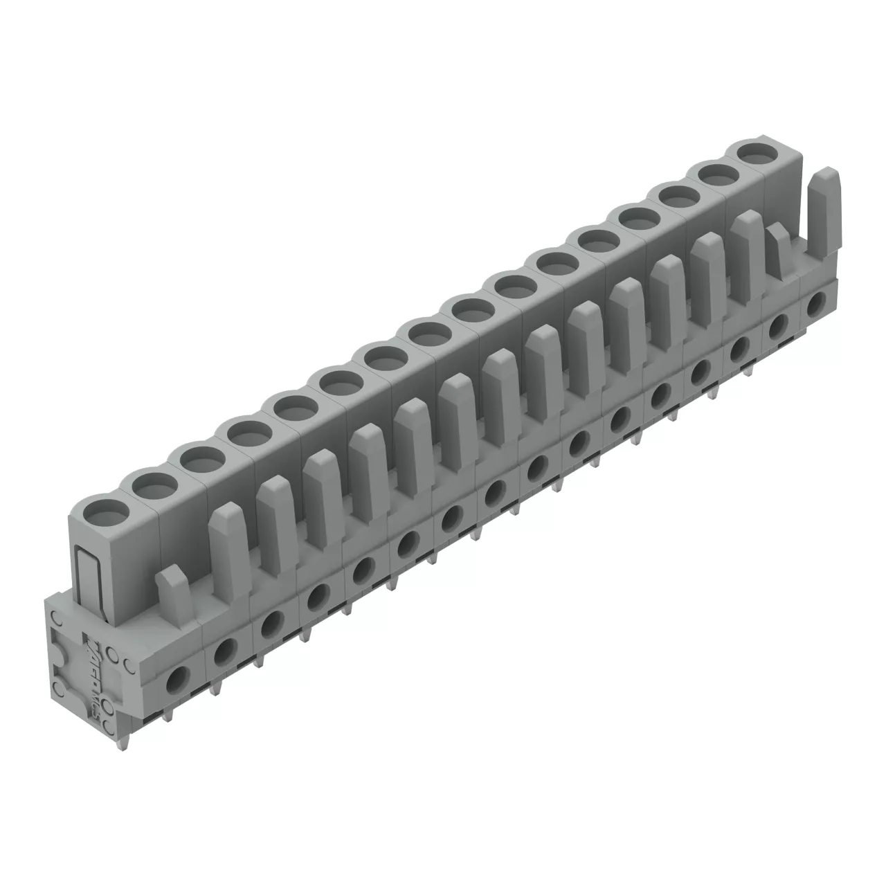 gniazdo THT; konstrukcja prosta; raster 5 mm; 16-bieg.; pin lutowniczy 0,6 x 1,0 mm; szary