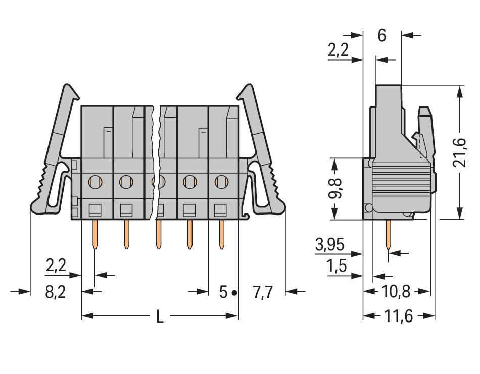 Gniazdo THT Pin lutowniczy 0,6 x 1,0 mm konstrukcja prosta, szare 232-147/039-000