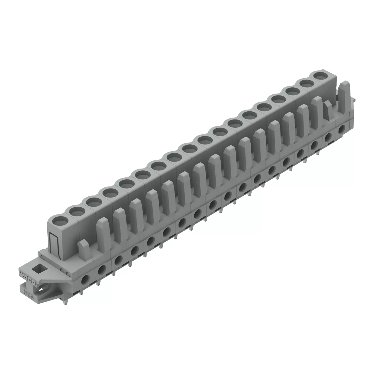 gniazdo THT; konstrukcja prosta; raster 5 mm; 18-bieg.; kołnierz mocujący; pin lutowniczy 0,6 x 1,0 mm; szary