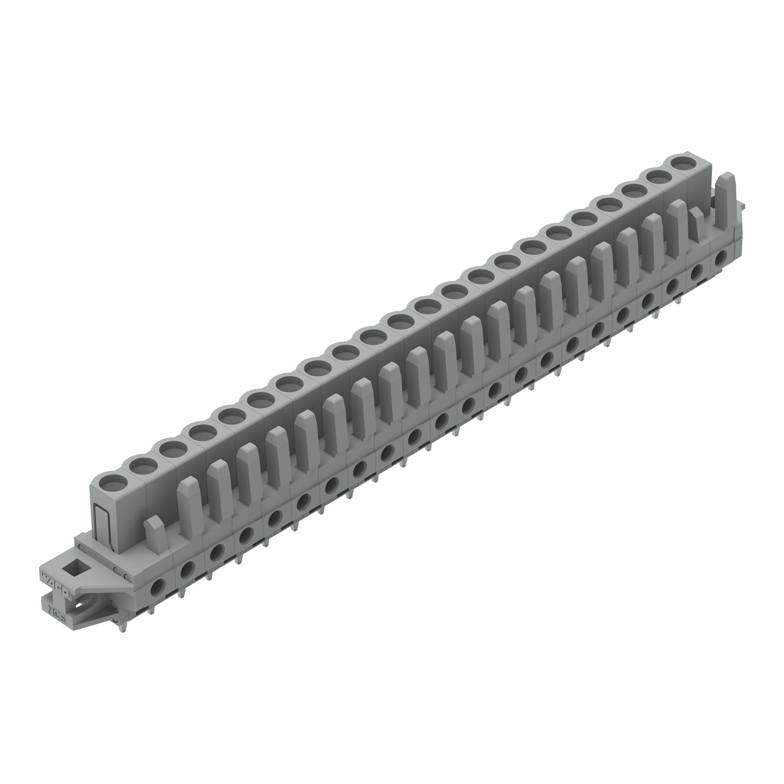gniazdo THT; konstrukcja prosta; raster 5 mm; 22-bieg.; kołnierz mocujący; pin lutowniczy 0,6 x 1,0 mm; szary