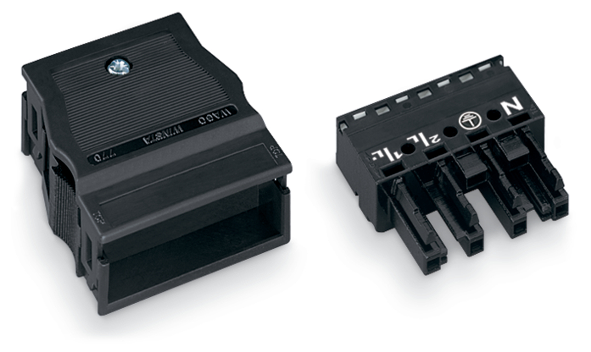 Gniazdo z obudową odciążającą przewody 4-bieg., czarne 770-104