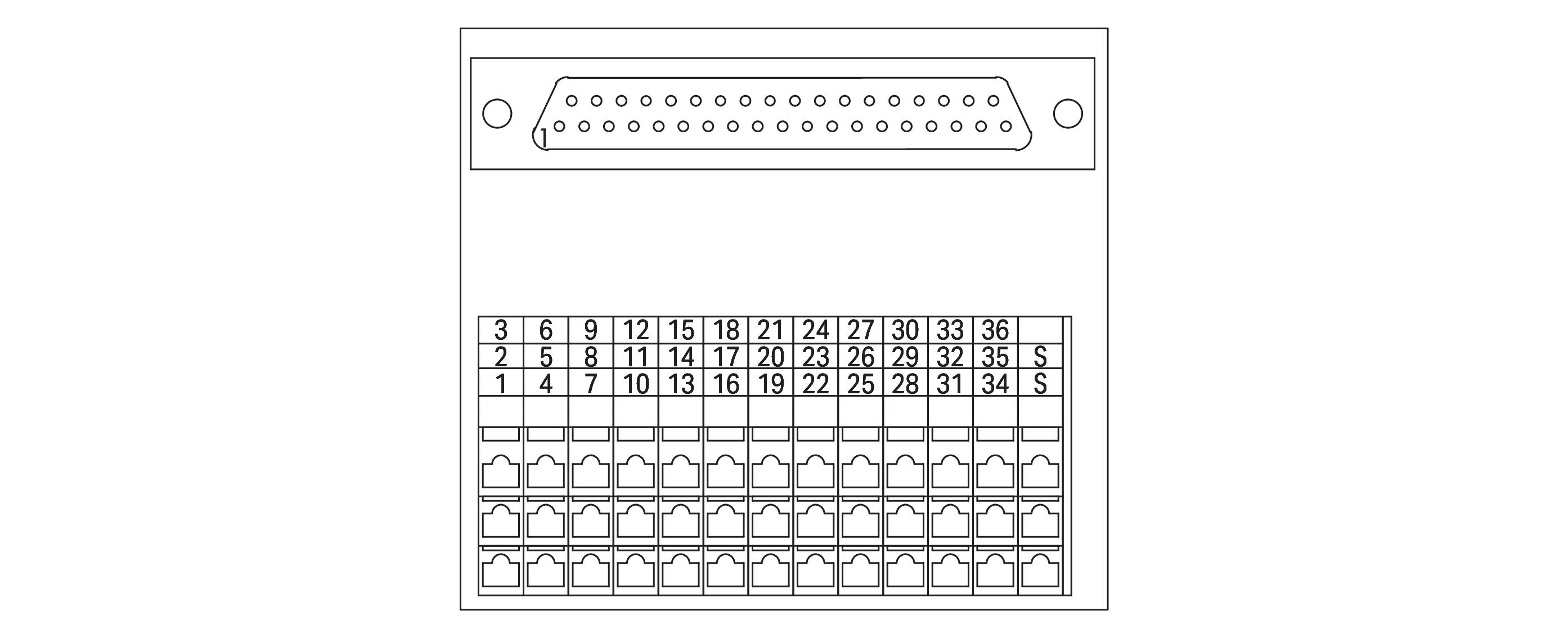 moduł przejściowy; Sub-Min-D; gniazdo; 25-bieg.; wielowtyk przeciwstawny z przyłączem do lutowania; podejście przewodem pionowe; złącza do PCB 3-piętrowe; w podstawce montażowej; z podłączeniem ekranu; 2,50 mm²