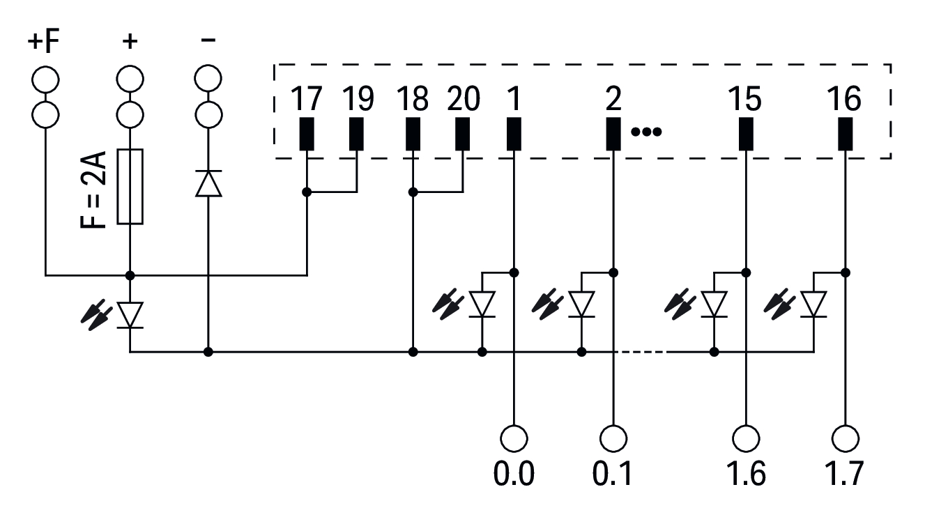 moduł przejściowy do oprzewodowania systemowego; wielowtyk zgodny z DIN 41651; wtyk; 20-bieg.; moduł wejść/wyjść dwustanowych 16-kanałowy; podłączanie 1-przewodowe; w podstawce montażowej