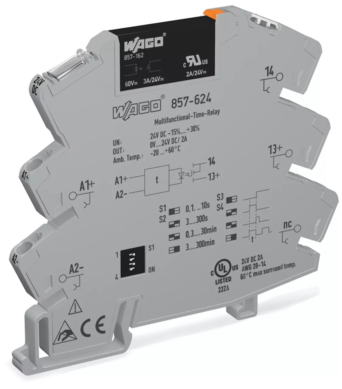 Moduł przekaźnika czasow. półprzewod., nominalne napięcie wejściowe 24 V DC, szerokość 6 mm 857-624
