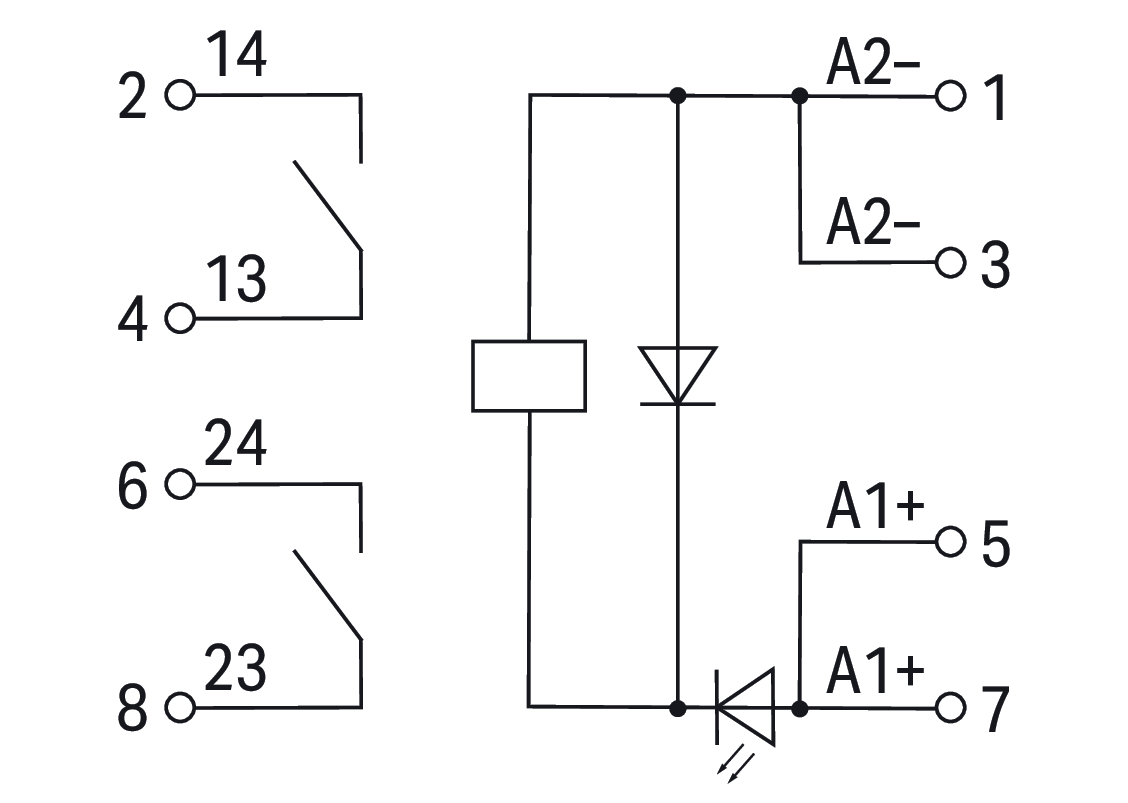 przekaźnik; znamionowe napięcie wejściowe 24 V DC; 2 zestyki zwierne; maksymalny prąd długotrwały 8 A; kolejnictwo; sygnalizacja statusu zielona; szerokość 20 mm