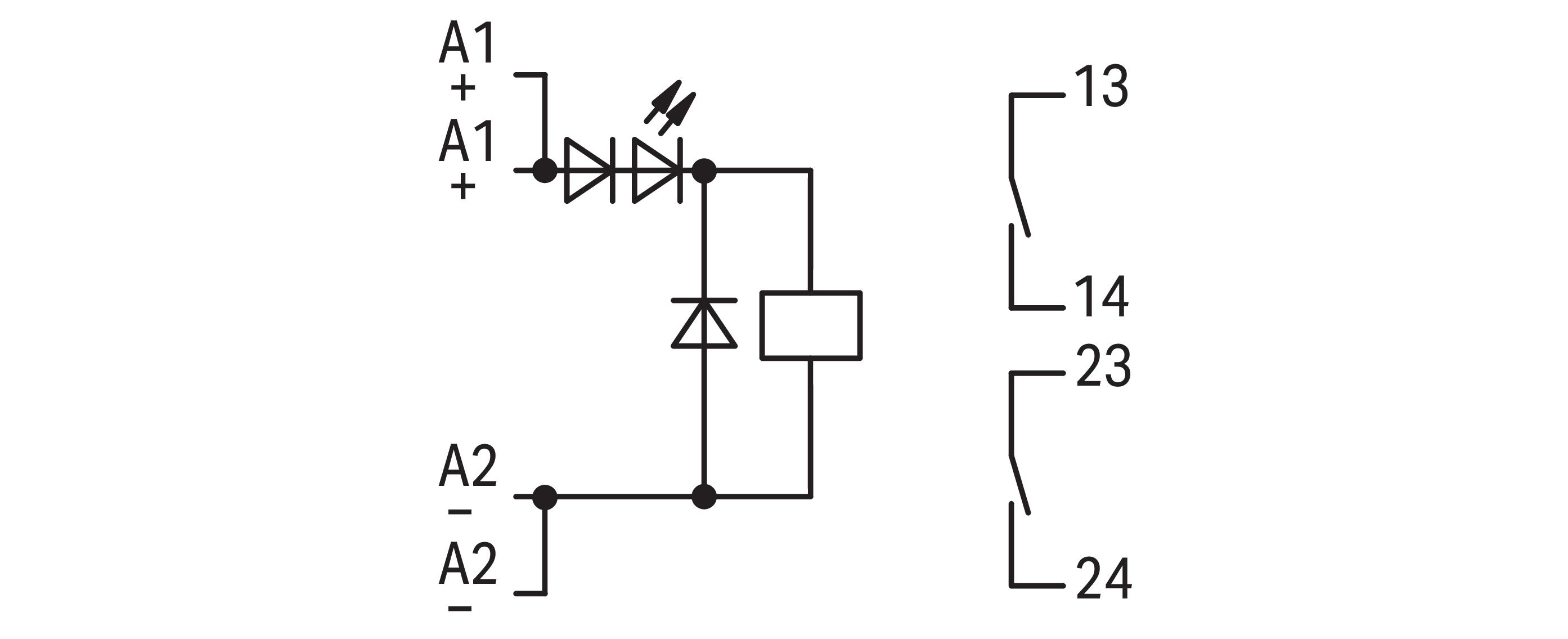 przekaźnik; znamionowe napięcie wejściowe 24 V DC; 2 zestyki zwierne; maksymalny prąd długotrwały 6 A; sygnalizacja statusu czerwony; szerokość 20 mm; szary