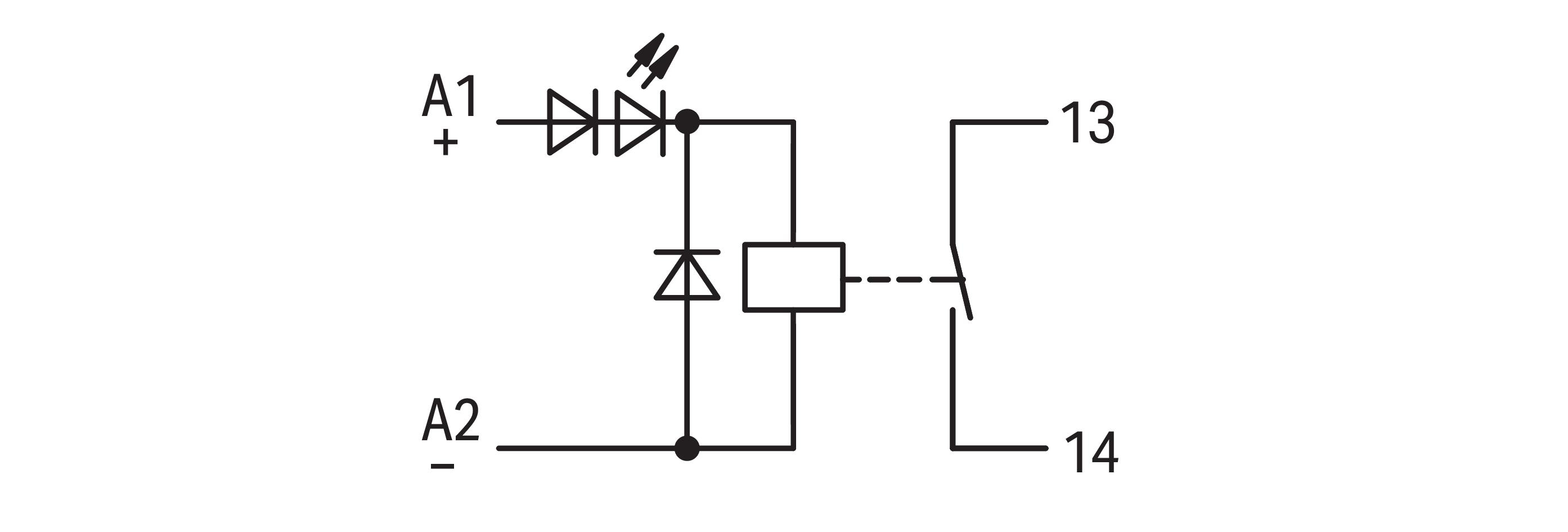 przekaźnik; znamionowe napięcie wejściowe 24 V DC; 1 zestyk zwierny; maksymalny prąd długotrwały 5 A; sygnalizacja statusu czerwony; szerokość 10 mm; szary