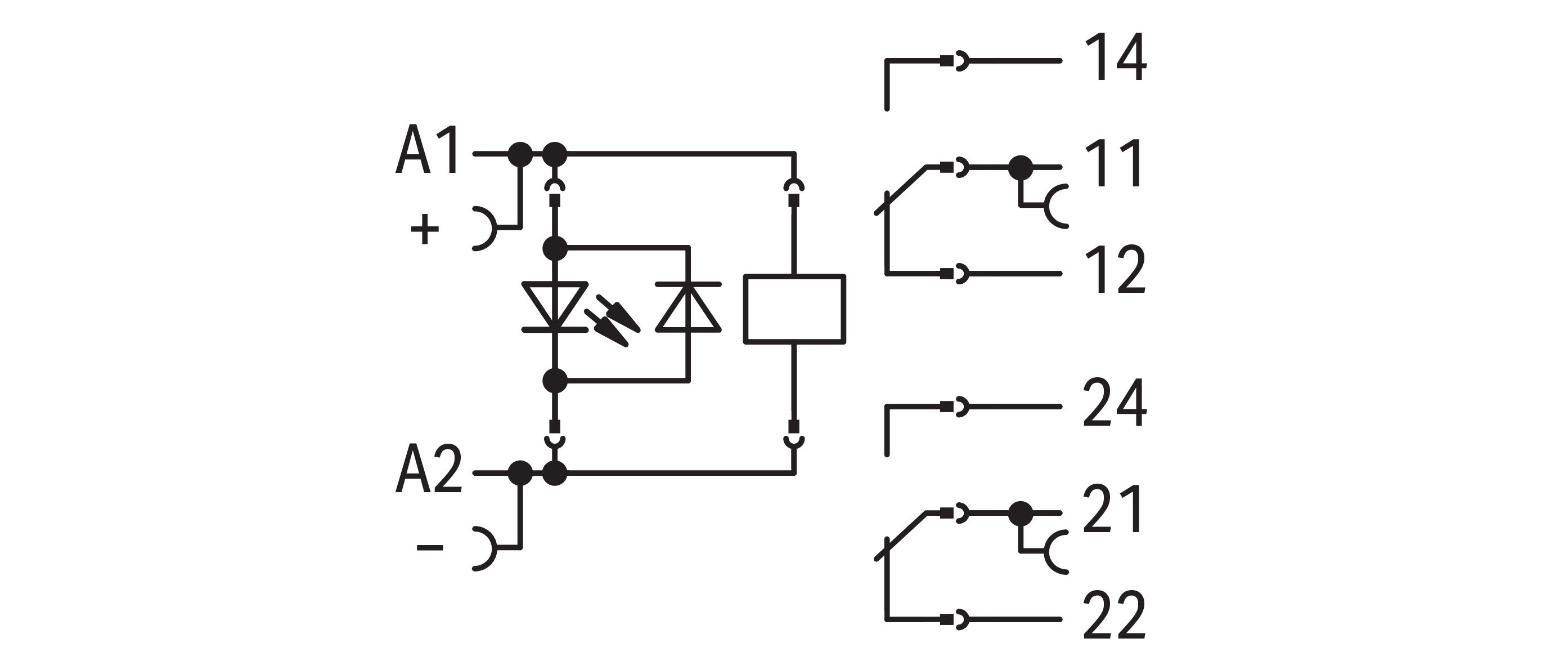 przekaźnik; znamionowe napięcie wejściowe 24 V DC; 2 x zestyk przełączny; maksymalny prąd długotrwały 8 A; z pozłacanymi zestykami; sygnalizacja statusu czerwony; szerokość 15 mm; 2,50 mm²; szary