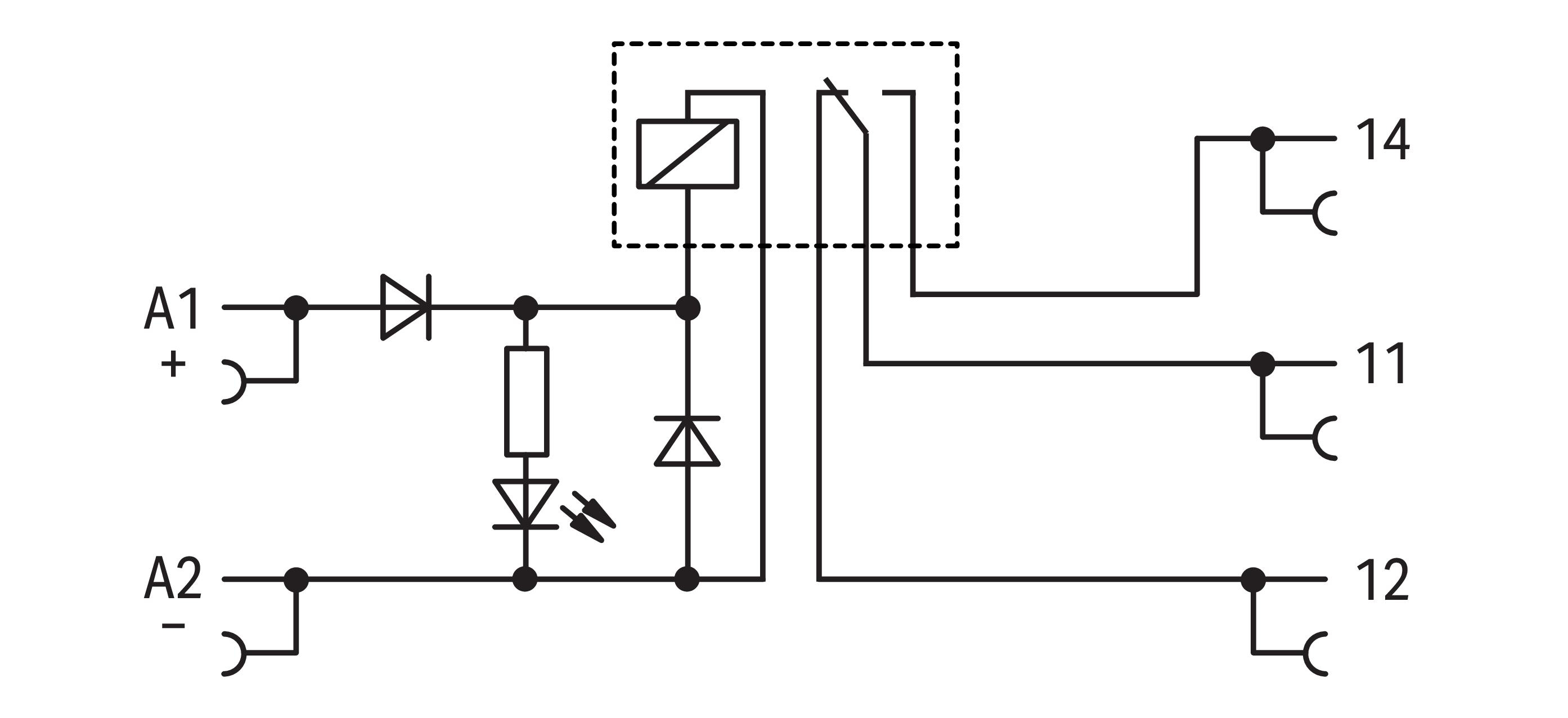 przekaźnik; znamionowe napięcie wejściowe 24 V DC; 1 zestyk przełączny; maksymalny prąd długotrwały 6 A; z pozłacanymi zestykami; sygnalizacja statusu żółta; szerokość 6 mm; 2,50 mm²; szary