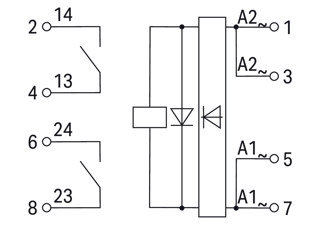 przekaźnik; znamionowe nap. wej. 24 V … 230 V AC/DC; 2 zestyki zwierne; maksymalny prąd długotrwały 5 A; sygnalizacja statusu zielona; szerokość 20 mm