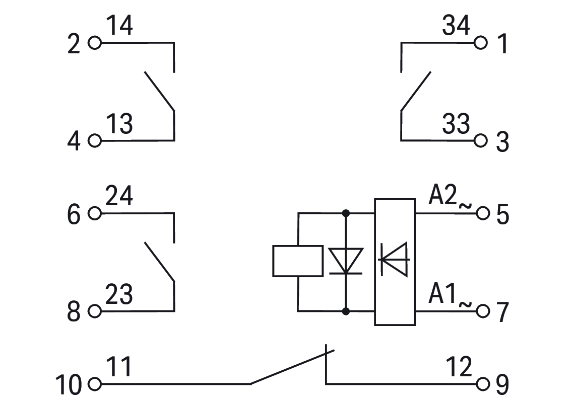 przekaźnik; znamionowe nap. wej. 24 V … 230 V AC/DC; 3 zestyki zwierne i 1 rozwierny; maksymalny prąd długotrwały 3 A; sygnalizacja statusu zielona; szerokość 25 mm