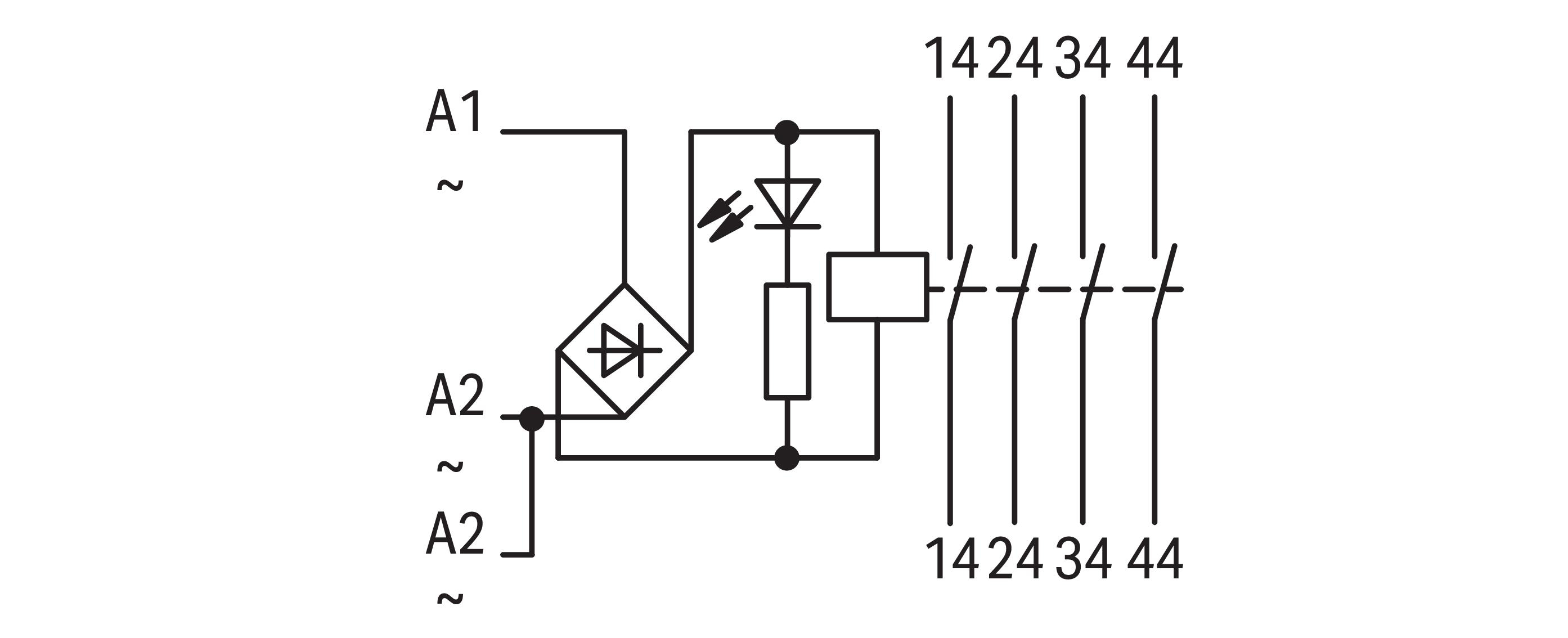 przekaźnik; znamionowe napięcie wejściowe 24 V AC/DC; 4 zestyk zwierny; maksymalny prąd długotrwały 4 A; sygnalizacja statusu czerwony; szerokość 18 mm; 2,50 mm²; szary
