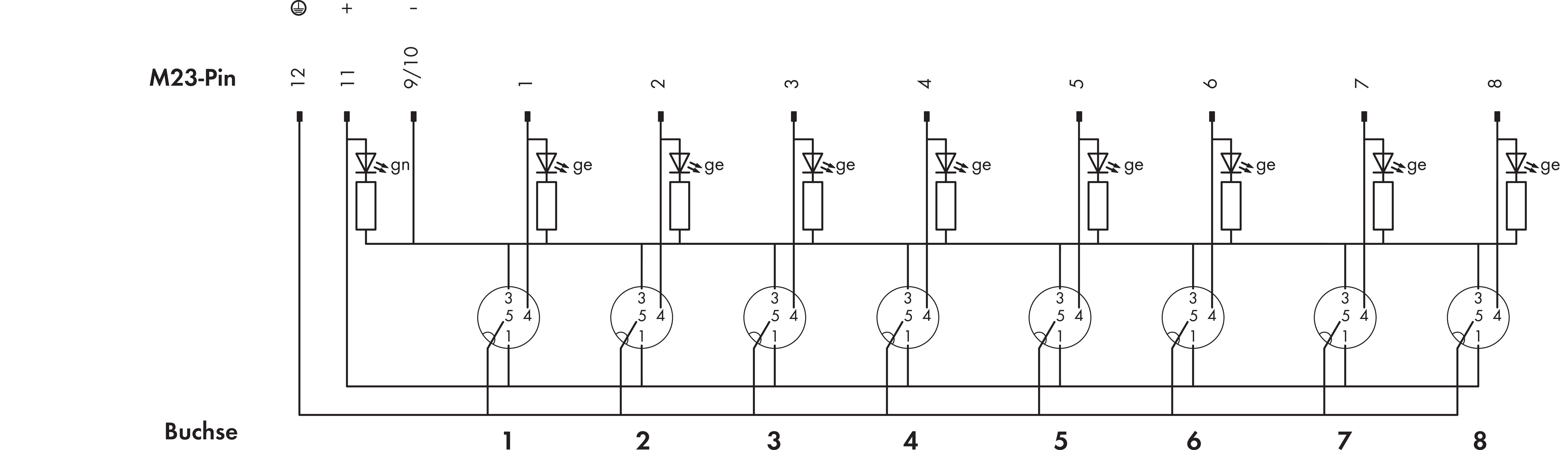 M12, moduł przyłącz. do cz./el. wykon.; 8-torowy; 4-bieg.; złącze M23