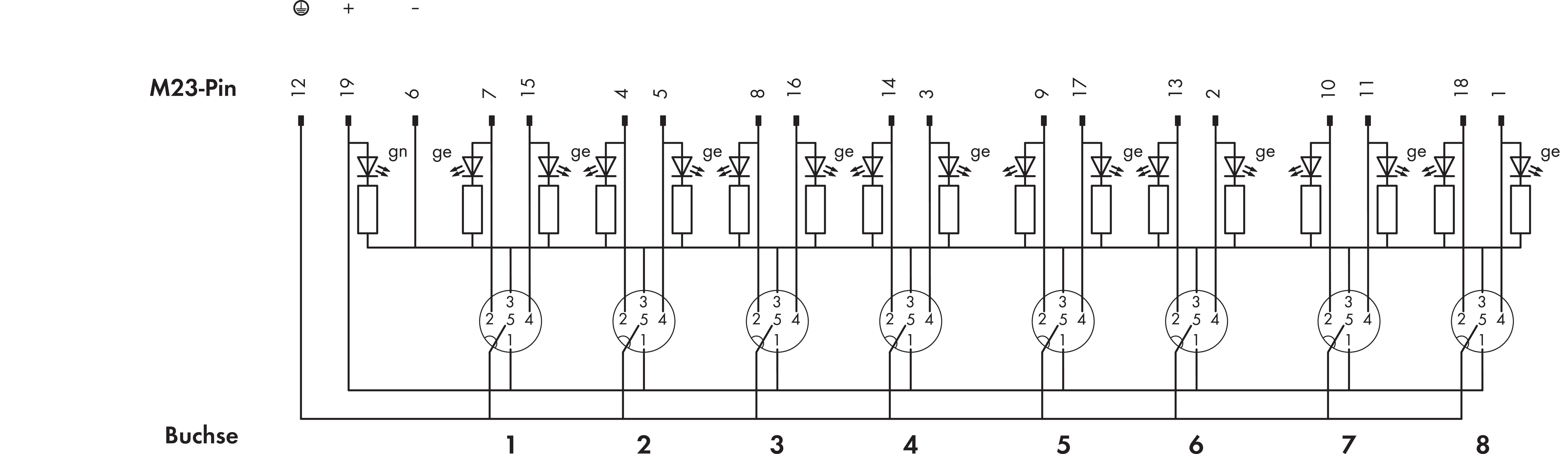 M12, moduł przyłącz. do cz./el. wykon.; 8-torowy; 5-bieg.; złącze M23