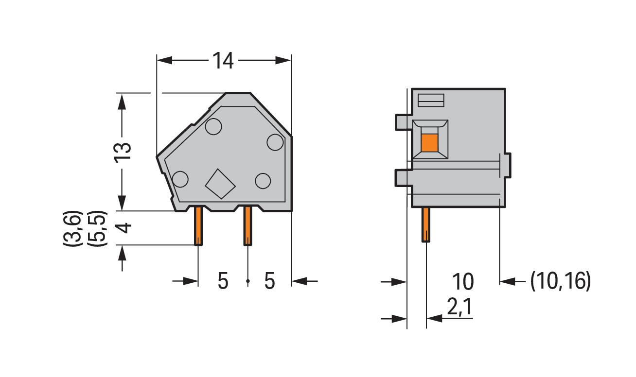 Modularna złączka do płytek drukowanych 2,5 mm² RM 10/10,16 mm 1-bieg, pomarańczowa 236-766/332-000