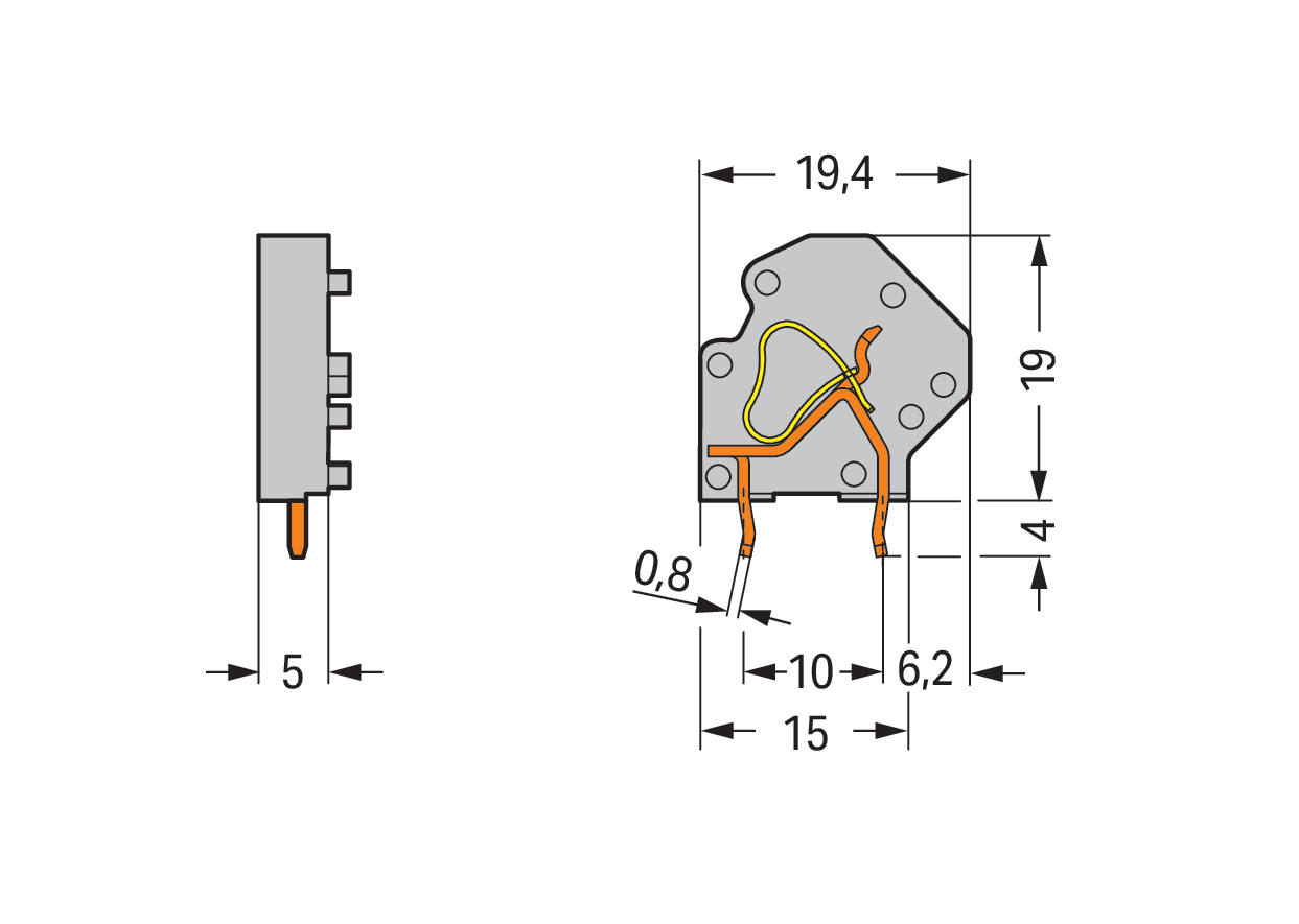 | Kąt płyta drukowana / przewód: |