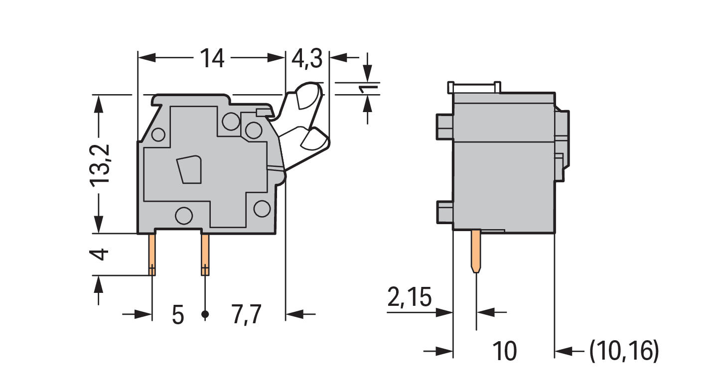 Modularna złączka do płytek drukowanych przycisk 2,5 mm² RM 10/10,16 mm 1-bieg, niebieski 255-764
