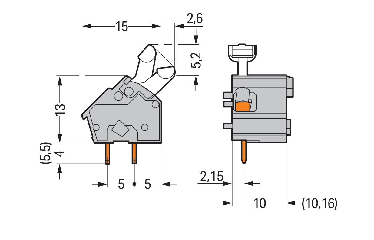 Modularna złączka do płytek drukowanych przycisk 2,5 mm² RM 10/10,16 mm 1-bieg, szara 256-601