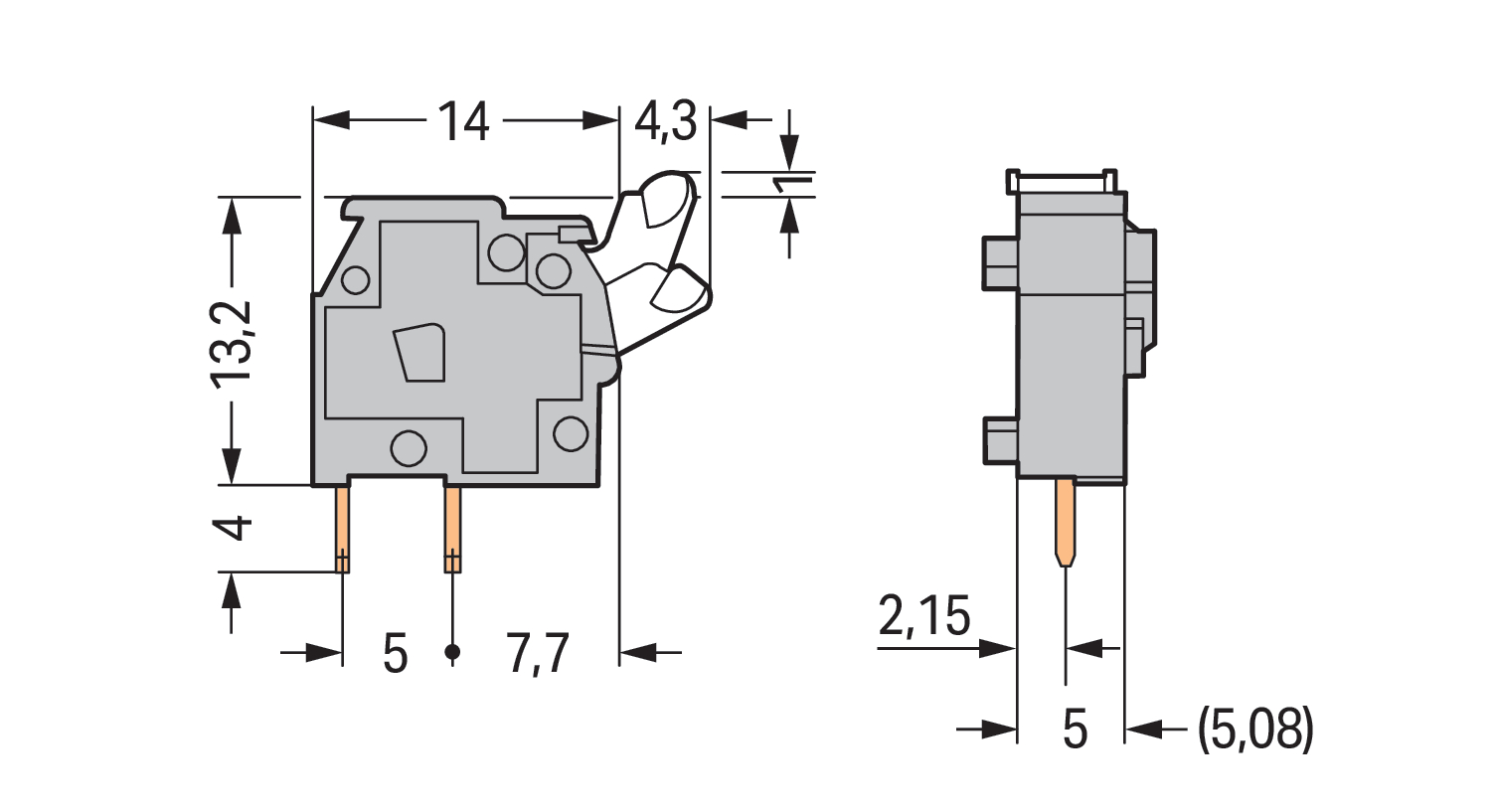 Modularna złączka do płytek drukowanych przycisk 2,5 mm² RM 5/5,08 mm 1-bieg, szara 255-401