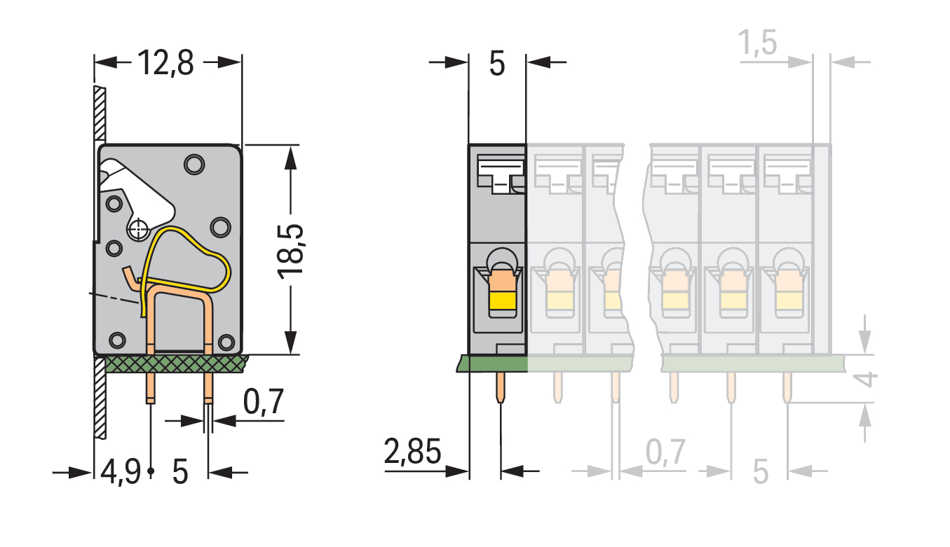 Modularna złączka do płytek drukowanych przycisk 2,5 mm² RM 5 mm 1-bieg, szara 741-904