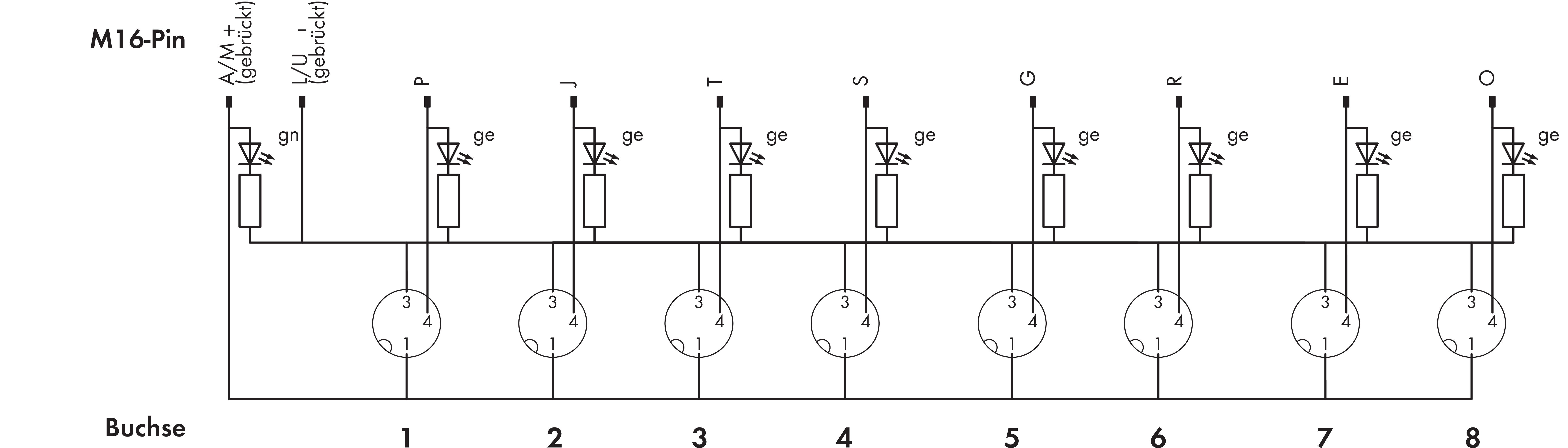 moduł przyłączeniowy M8 do czujników/elementów wykonawczych; 8-torowy; 3-bieg.; złącze M16
